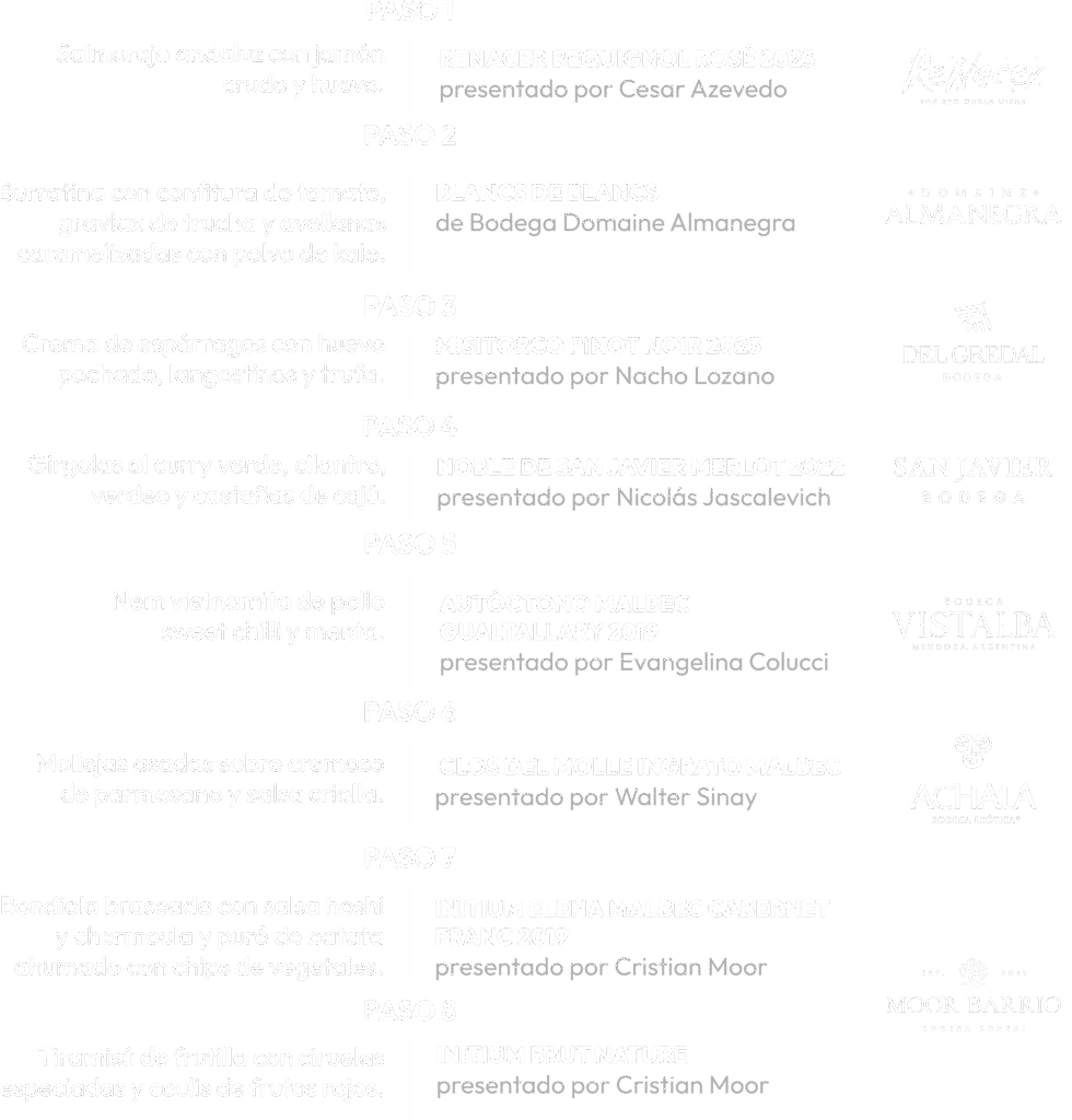 Cada plato, creado por el chef Dante Aparicio, propietario de Cartof Restaurante, fue maridado con vinos de alta gama especialmente elegidos para potenciar la experiencia.
